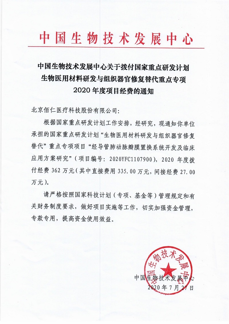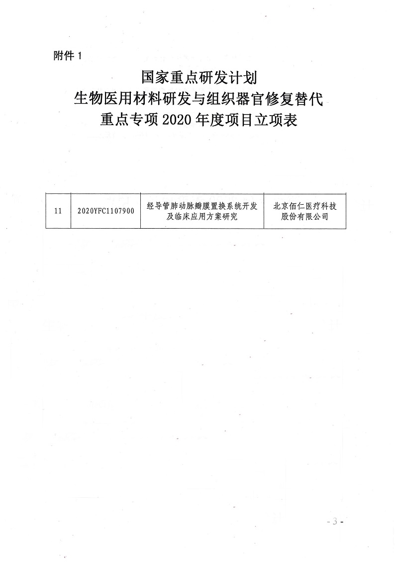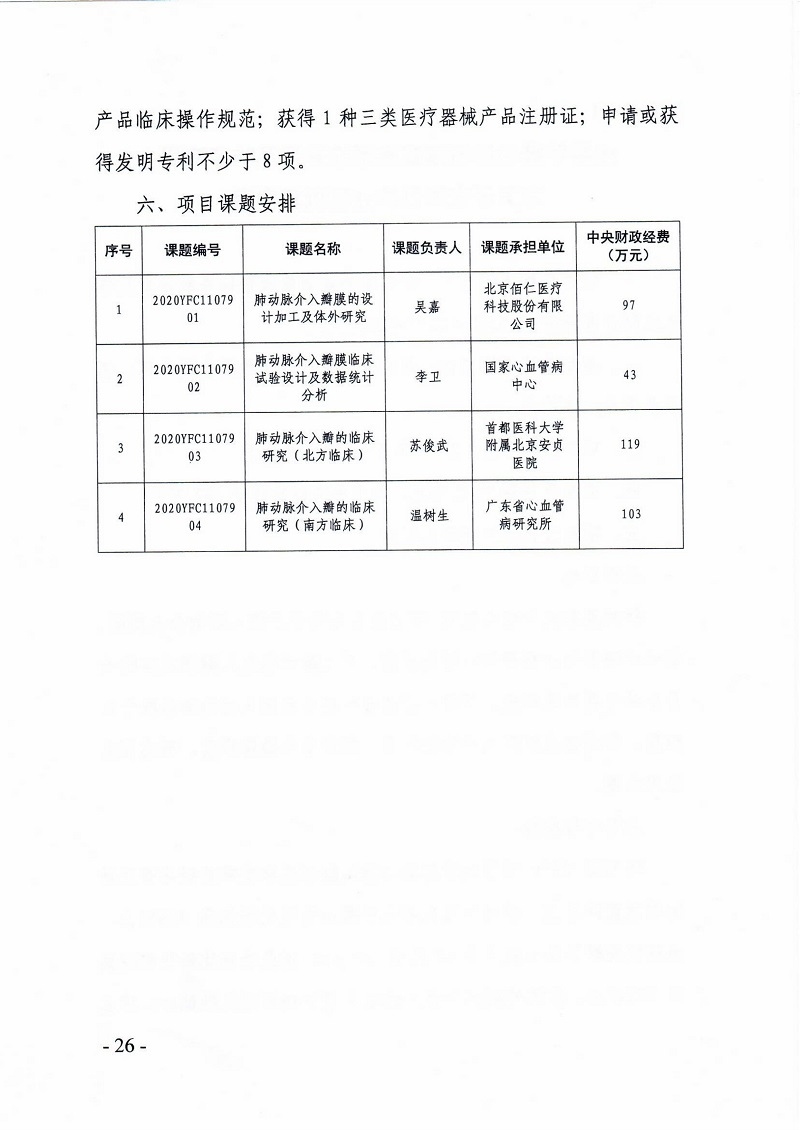 该项目由佰仁医疗牵头,参加单位包括国家心血管病中心、首都医科大学附属北京安贞医院、广东省心血管病研究所、北京航空航天大学生物与医学工程学院、中国食品药品检定研究院,项目执行年限2年。