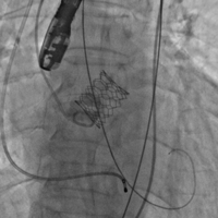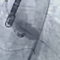 上午11时许,手术直播开始。手术经股动脉入路,使用23#预扩球囊进行跨瓣预扩,预扩后患者突发室颤,血压下降,考虑与患者心功能较差,预扩后反流增加有关。手术团队具有丰富经验,临危不乱,立即予患者电复律、心肺复苏,同时迅速为患者植入一枚25#Renatus介入主动脉瓣,以保证患者左心室-主动脉单向血流。瓣膜植入后,予以补液、血管活性药物治疗,患者血流动力学逐渐稳定,生命体征恢复平稳,术后超声及造影示:瓣膜位置理想,无瓣中返流及瓣周漏,TEE提示主动脉瓣平均跨瓣压差由术前38mmHg降至5mmHg,峰值流速由术前4.3m/s降至1.8m/s。整个手术在一小时内结束,最终获得成功。
