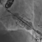 术前经详尽评估患者病情,通过CT重建测量瓣环直径、左室流出道面积。结合之前外科换瓣手术入路,决定采用经心尖途径行二尖瓣“瓣中瓣”手术。术中选用25号Renato®球扩式瓣中瓣,顺利通过心尖途径植入。手术过程顺利,主要操作时间不到半小时,几乎无出血。最终瓣中瓣植入位置理想,功能表现出色,左室造影及经食道超声观察无明显瓣中及瓣周返流。二尖瓣峰值流速由术前2.5m/s降至1.3m/s,平均跨瓣压差由16mmHg降至2.1mmHg。