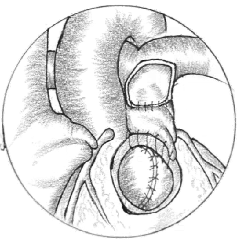 右室T形切口 缝合左心耳重建肺动脉后壁